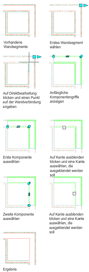 In dem folgenden Beispiel werden Wandplatten-Komponentenkanten ausgeblendet, um eine innere Eckbedingung zu erstellen.