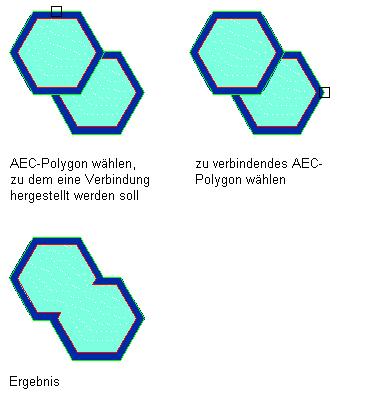 Anmerkung: Sie können nur die AEC-Polygone miteinander verbinden, die auf derselben Z-Ebene liegen. Zwei AEC-Polygone mit unterschiedlichen Z-Positionen innerhalb desselben Koordinatensystems können nicht verbunden werden.