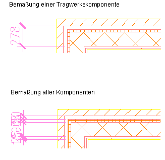 Diese Unterscheidung ist bei der Erstellung von Bemaßungsstilen für Wände mit mehreren Komponenten von Bedeutung, da Sie dort festlegen können, dass nur tragende Komponenten bemaßt werden sollen.