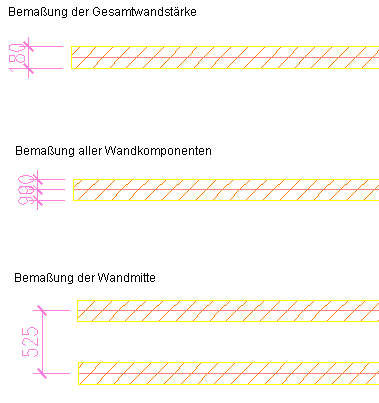 - Gesamt: Die Gesamtstärke der Wand wird bemaßt.