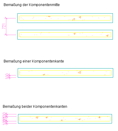 - Um Bemaßungen für die Mitte der Komponente festzulegen, wählen Sie