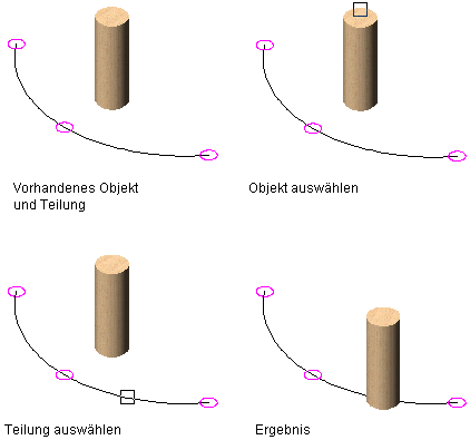 Parametrische Layout- und Verankerungswerkzeuge. Das Objekt wird an der X-Position mit der Teilung verankert. Bei der anfänglichen Platzierung ist die Y- und Z-Position gleich 0.
