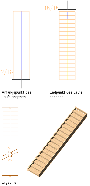 | Angeben der Breite der einzelnen Auftritte im Treppenlauf | Wählen Sie für alle Felder |
