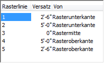 9. Geben Sie in der Tabelle unter Versatz einen Versatzabstand für jede Rasterlinie ein.