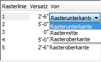 10. Wählen Sie in der Rasterlinientabelle unter Von die Rasterposition, von der die Rasterlinie versetzt werden soll.