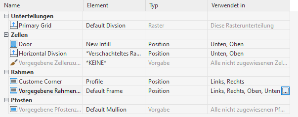 Angeben von unterschiedlichen Rahmendefinitionen für Tür-Fenster-Kombinationen