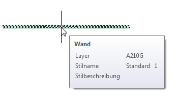 Wenn Sie den Cursor über ein Objekt im Zeichnungsbereich halten, wird eine QuickInfo mit grundlegenden Informationen zum Objekt angezeigt.
