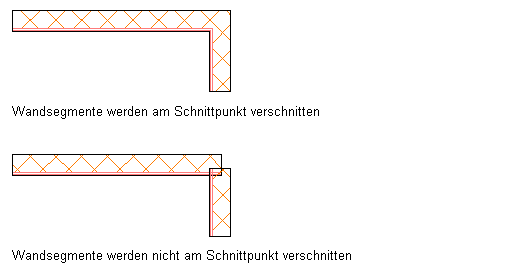 Die Definition einer Wandverschneidungsgruppe ist eine Vorgabe, die Sie einzelnen Wänden zuweisen können, um die Verschneidung von sich schneidenden Wänden zu steuern. Wände derselben Verschneidungsgruppe werden an ihren Schnittpunkten gemäß der Prioritäten verschnitten, die den Komponenten der beteiligten Wände zugewiesen sind. Wände, die unterschiedlichen Verschneidungsgruppen angehören, werden an ihren Schnittpunkten oder Ecken nicht verschnitten.