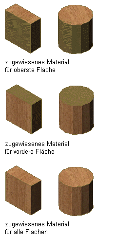 Das Festlegen der Flächen bei einem regulären Objekt, z. B. einer Wand, einer Decke oder einem quaderförmigen Massenelement, erweist sich als einfacher und intuitiver Vorgang. Vorne, Hinten, Links, Rechts, Oben und Unten sind klar definierte Flächen, denen problemlos Materialdefinitionen zugewiesen werden können. Die Festlegung, welche Fläche in welcher Richtung liegt, kann sich jedoch als komplexer Vorgang gestalten, insbesondere bei unterschiedlichen, unregelmäßig geformten Elementen, beispielsweise für gebogene, Extrusions- oder Freiformobjekte, die sich aus booleschen Berechnungen ergeben.