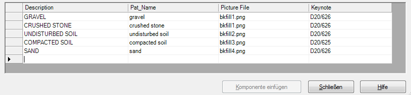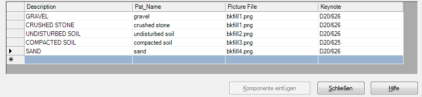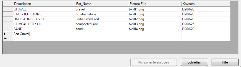 Anmerkung: Die Spalte Bauelementschlüssel kann nicht direkt bearbeitet werden. Klicken Sie mit der rechten Maustaste in eine Zelle, und wählen Sie Bearbeiten, um das Dialogfeld Bauelementschlüssel wählen zu öffnen.
