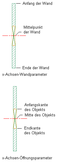 Mittelpunkt der Wand als Referenzpunkt wählen Unter "Längs positionieren (X)" wählen Sie Mitte der Wand für Von.