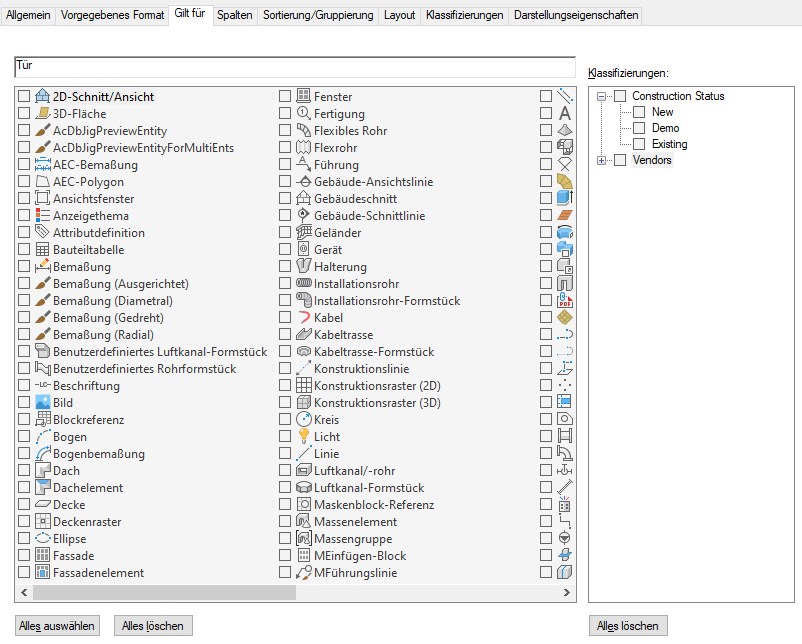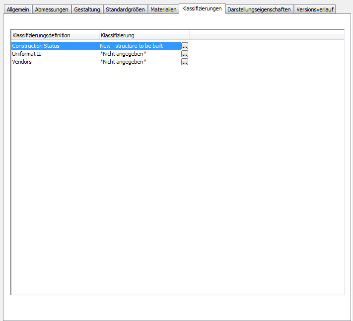 Angeben von Klassifizierungskriterien in einem Bauteiltabellen-Stil