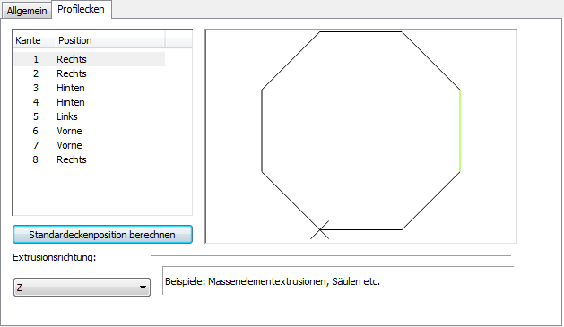 Die verfügbaren Kantenpositionen richten sich nach der gewählten Extrusionsrichtung.