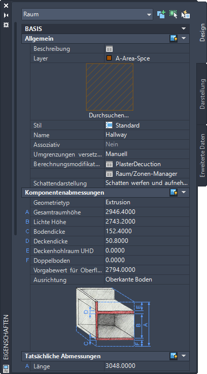 - Verwenden Sie die geänderten Werte in einer Bauteiltabelle oder in einer Raumauswertung.