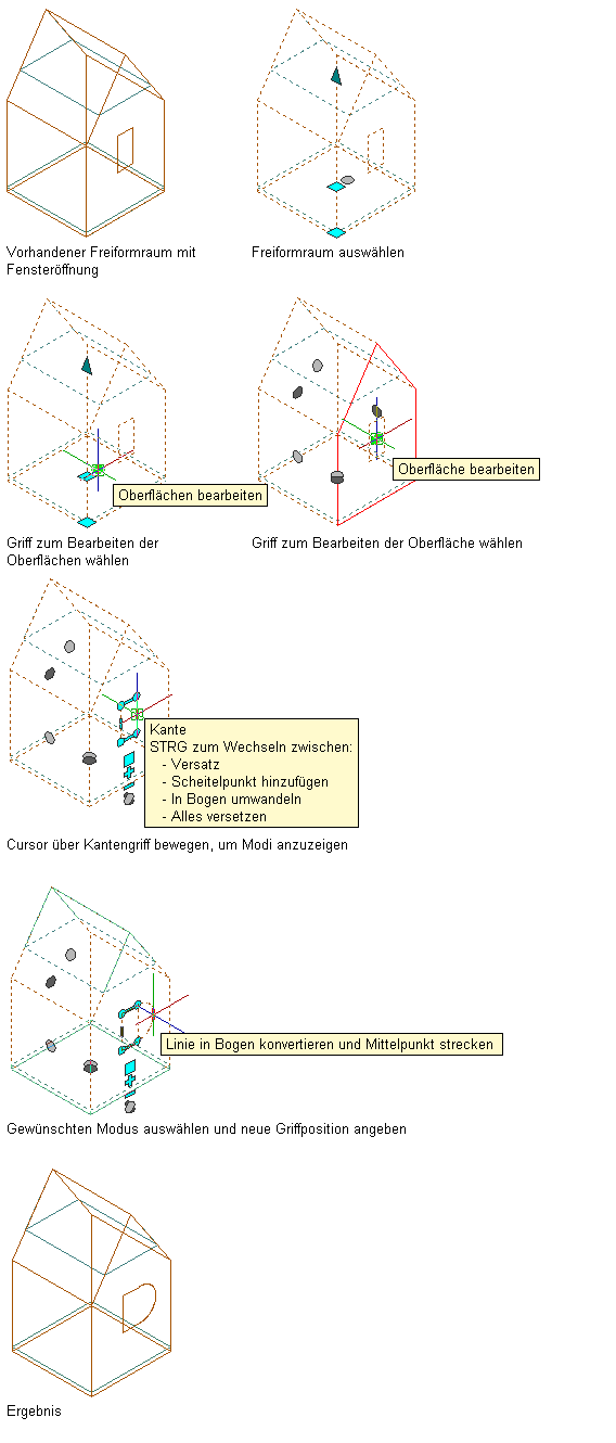 Umwandeln der Kante einer Fensteröffnung zu einem Bogen auf einer Freiformraum-Oberfläche