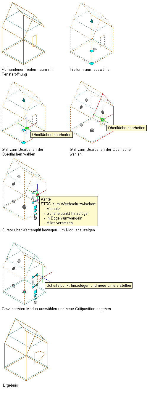 Hinzufügen eines Scheitelpunkts zur Kante einer Fensteröffnung auf einer Freiformraum-Oberfläche
