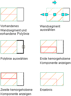 In dem folgenden Beispiel wird eine Wandabschluss-Polylinie einer Wandkomponente zugewiesen.
