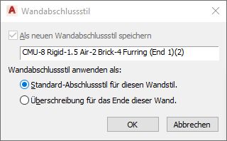 Das Dialogfeld Wandabschlussstil wird angezeigt und ermöglicht Folgendes: