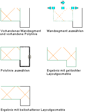 Klicken Sie auf OK. Die angegebene Wandkomponente wird mit der Wandabschluss-Polylinie verbunden. Klicken Sie auf Abbrechen, um die Änderungen zu verwerfen.