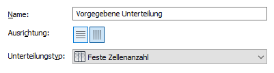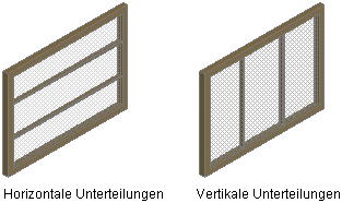 Jedes einzelne Raster einer Tür-Fenster-Kombination weist eine Unterteilungszuweisung auf, die eine horizontale oder vertikale Unterteilung festlegt. Darüber hinaus legt diese Unterteilung die Anzahl der Zellen, deren Größe und deren Platzierung fest.