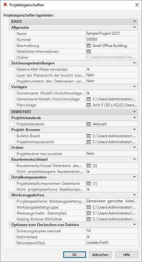 | Neues Projekt, das auf dem vorgegebenen AutoCAD Architecture 2027-Toolset-Vorlagenprojekt basiert | Verweis auf neue ATC-Datei unter \<Projektname>\Standards\WorkspaceToolPalettes\<Projektname>.atc Standardmäßig enthält die ATC-Datei bereits eine leere Werkzeugpalette. |
