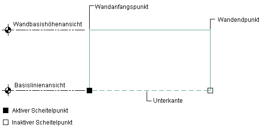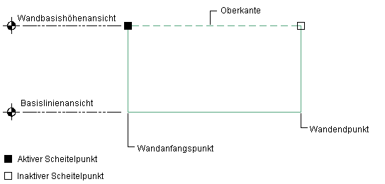 Sie können Ober- und Unterkante einer Wand ändern, um eine nicht-rechteckige Wand zu erstellen.