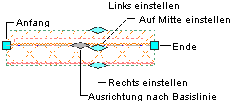 In der folgenden Abbildung ist der Griff Ausrichtung nach Basislinie ausgewählt, was durch die graue Farbe des Griffs gezeigt wird.