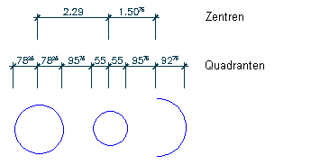 Beispiel für die Bemaßung von Kreismitten und -quadranten