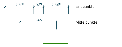 Beispiel für die Bemaßung von Linienendpunkten und -mittelpunkten