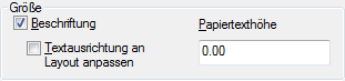 - Aktivieren Sie unter Größe die Option Beschriftung.