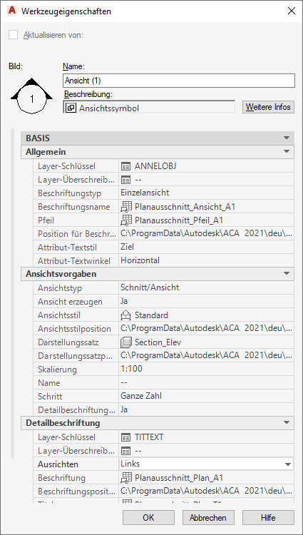 Die Beschriftungseigenschaften von MV-Blöcken werden aus der Blockdefinition abgeleitet. Die Beschriftungseigenschaften von AEC-Bemaßungen werden aus dem Bemaßungsstil abgeleitet.