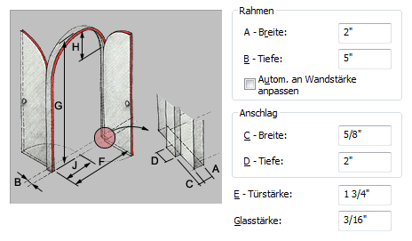 Ändern der Türstockabmessungen Geben Sie unter Türstock die entsprechenden Werte für Breite und Tiefe ein.