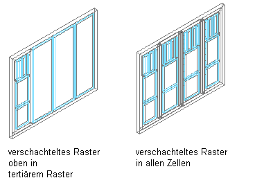 Jedes Fassadenraster ist eindimensional mit einer horizontalen oder vertikalen Unterteilung. Durch das Verschachteln von Rastern im Fassadenstil können Sie verschiedene (von einfachen bis hin zu komplexen) Muster erstellen.