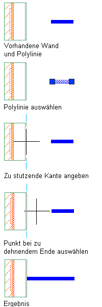 Verwenden Sie diese Vorgehensweise, um eine oder mehrere Linien, offene Polylinien oder Bogen exakt auf eine Kante oder ein gerades bzw. gebogenes Segment eines Objekts oder auf eine Erweiterung dieses Segments zu erweitern.