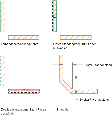 Fasen von Wandsegmenten unter Verwendung der Abstandsoption