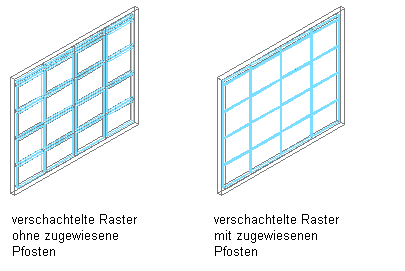 Die Pfosten einer Fassade sind die Kanten zwischen den Rasterzellen. Das primäre und jedes einzelne verschachtelte Raster weisen Pfosten auf, die unabhängig von den anderen Rastern definiert werden.
