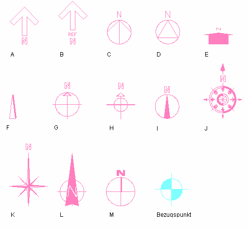 | Allgemein/Symbol | Gibt das blockbasierte Symbol an, das für den Nordpfeil oder den Bezugspunkt verwendet werden soll. |