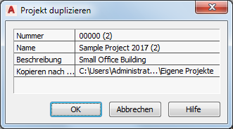 - Geben Sie im Dialogfeld Projekt duplizieren eine Nummer für das neue Projekt ein.