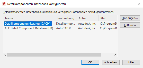 - Klicken Sie zweimal auf OK. Beachten Sie, dass durch das Entfernen der obersten Datenbank in der Liste die darunter liegende Datenbank im Dialogfeld Detailkomponenten-Katalog ausgewählt wird.