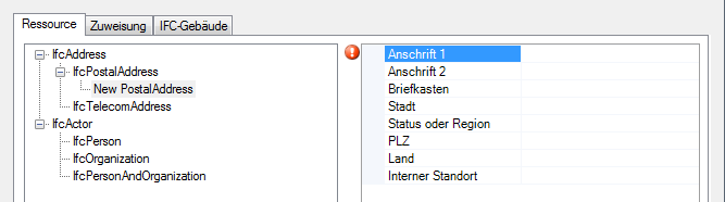 3. Erweitern Sie im Dialogfeld IFC-Ressource und Zuweisung eine der Kategorien für IFC-Ressourcen (z. B. IFC-Anschrift).