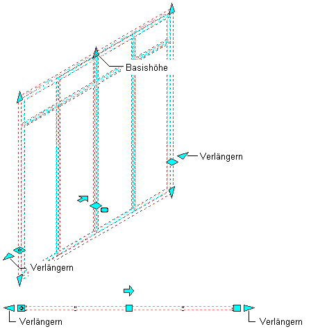 Anzeigen der Längen- und Basishöhengriffe einer Fassade