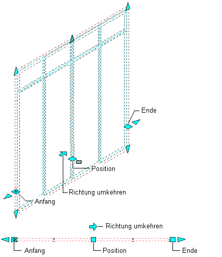 Anzeigen eines Fassadenelements mit Griffen für Start, Ende, Position und Richtungsumkehrung
