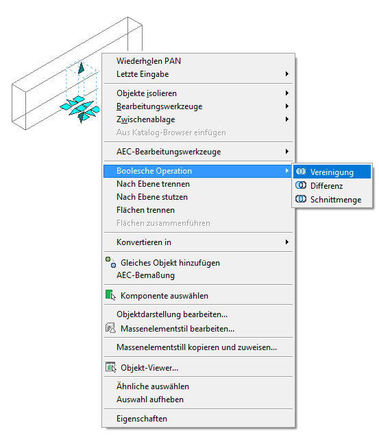 Sie können einen 3D-Modifikator einem Wandkörper hinzufügen und dann direkt bearbeiten. Körpermodifikatoren nutzen die dreidimensionale Geometrie eines Objekts (z. B. eines Massenelements oder einer Massengruppe), um eine Wandkomponente durch Addition oder Subtraktion zu verändern oder sie vollständig zu ersetzen.