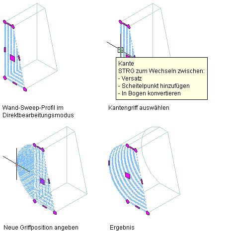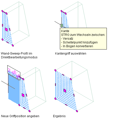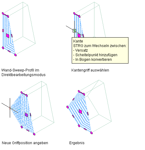 Verschieben eines direkt bearbeitbaren Wand-Sweep-Scheitelpunkts