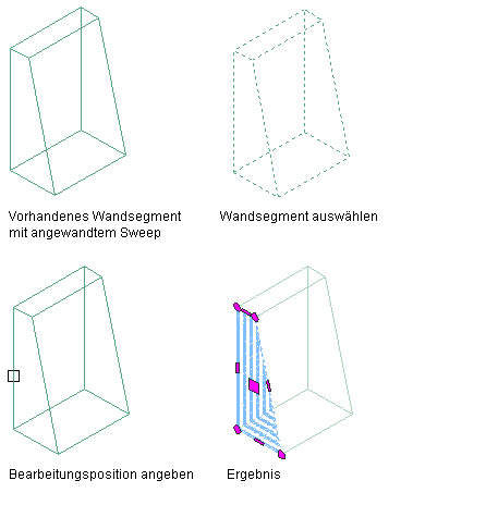 Gehen Sie wie folgt vor, um die Form einer Wandkomponente zu ändern, die mithilfe eines Wand-Sweeps definiert worden ist. Sie können zur Änderung der Darstellung des Wand-Sweeps ein anderes Profil wählen oder das aktuelle Profil bearbeiten.