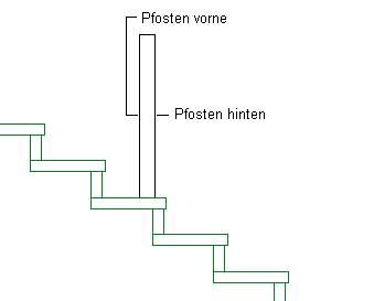 Legen Sie die Pfostenausrichtung, wie in der nachstehenden Abbildung gezeigt, relativ zum ab- oder aufwärtigen Verlauf einer Treppe in der Gebäudemodellansicht fest: