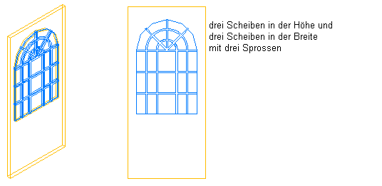 Nachdem Sie einen Sprossenblock zu einem Türstil hinzugefügt haben, können Sie ein Material, z. B. einen Holzfensterflügel, zuweisen und die Darstellungseigenschaften, z. B. Farbe und Linientyp, für den Sprossenblock angeben.