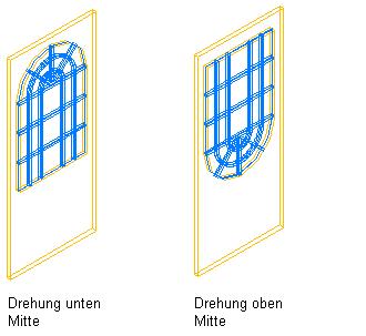 | Platzieren der Drehung im oberen Bereich einer halbrunden Form | Wählen Sie unter Drehung die Option Oben zentriert. |