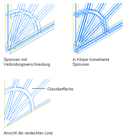 | Konvertieren sämtlicher Sprossen in einen Körper (mit verschnittenen Verbindungen) | Wählen Sie unter Sprosse die Option In 3D-Körper umwandeln. |