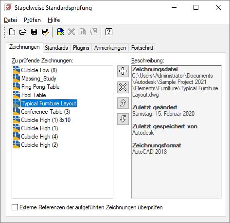 Die stapelweise Standardsprüfung für AutoCAD wird unabhängig von AutoCAD Architecture 2027-Toolset ausgeführt.